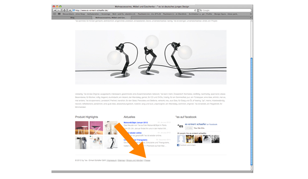 © 2012 by °es - Ermert Schäfer GbR | Impressum | Sitemap | Shops und Händler | Presse