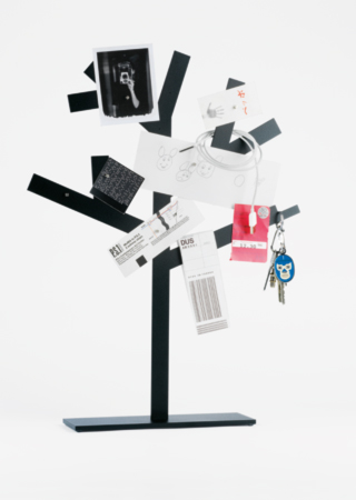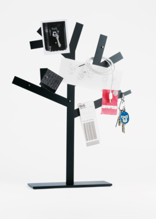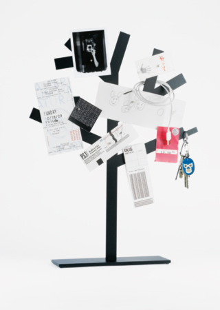 Der Blätterbaum sammelt Notizen, Fotos, Erinnerungen… Blätter jeder Art können mit Hilfe kleiner Magnete an den Metallbaum geheftet werden. Schlüsselbunde, Ketten und Ähnliches lassen sich in die Äste hängen. Selbst im Winter wird der Blätterbaum immer eine volle Krone haben.